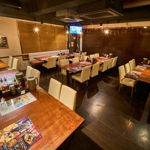 カジュアルな雰囲気のおしゃれな店内は、少人数の集まりから大規模宴会まで幅広いシーンでご利用いただけます!テーブル席は、大人数でも利用できて席の配置が可能なのでご相談ください。