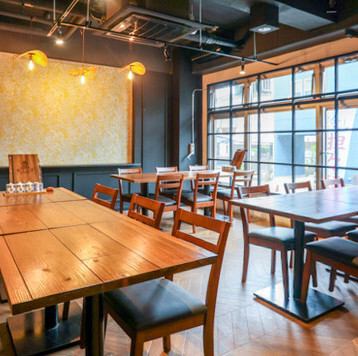 ランチ時には大きな窓から入る光で明るい店舗でこだわりの食事を楽しめる事ができます。テーブルや椅子の配置も人数に合わせて組み合わせ出来ますのでご相談ください。