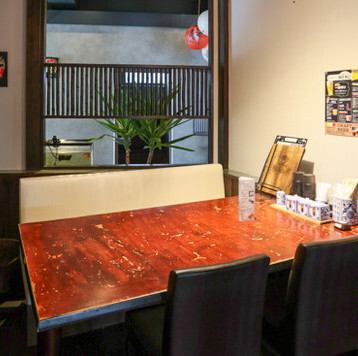 【ベンチシートのテーブル席】家族でのご利用もお席でも寛げます。シート席は広く使えるのでゆったりと座れて便利です。荷物が多くても安心して座れる広さです。